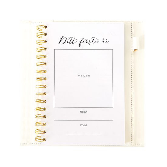 Ditt första år är en fyll-i-bok där du som förälder/vårdnadshavare fyller i månad för månad under bebisens första år. Här finns en loggbok för hur månaden har varit, hur barnet äter och sover och hur mycket barnet har växt under månaden som gått!